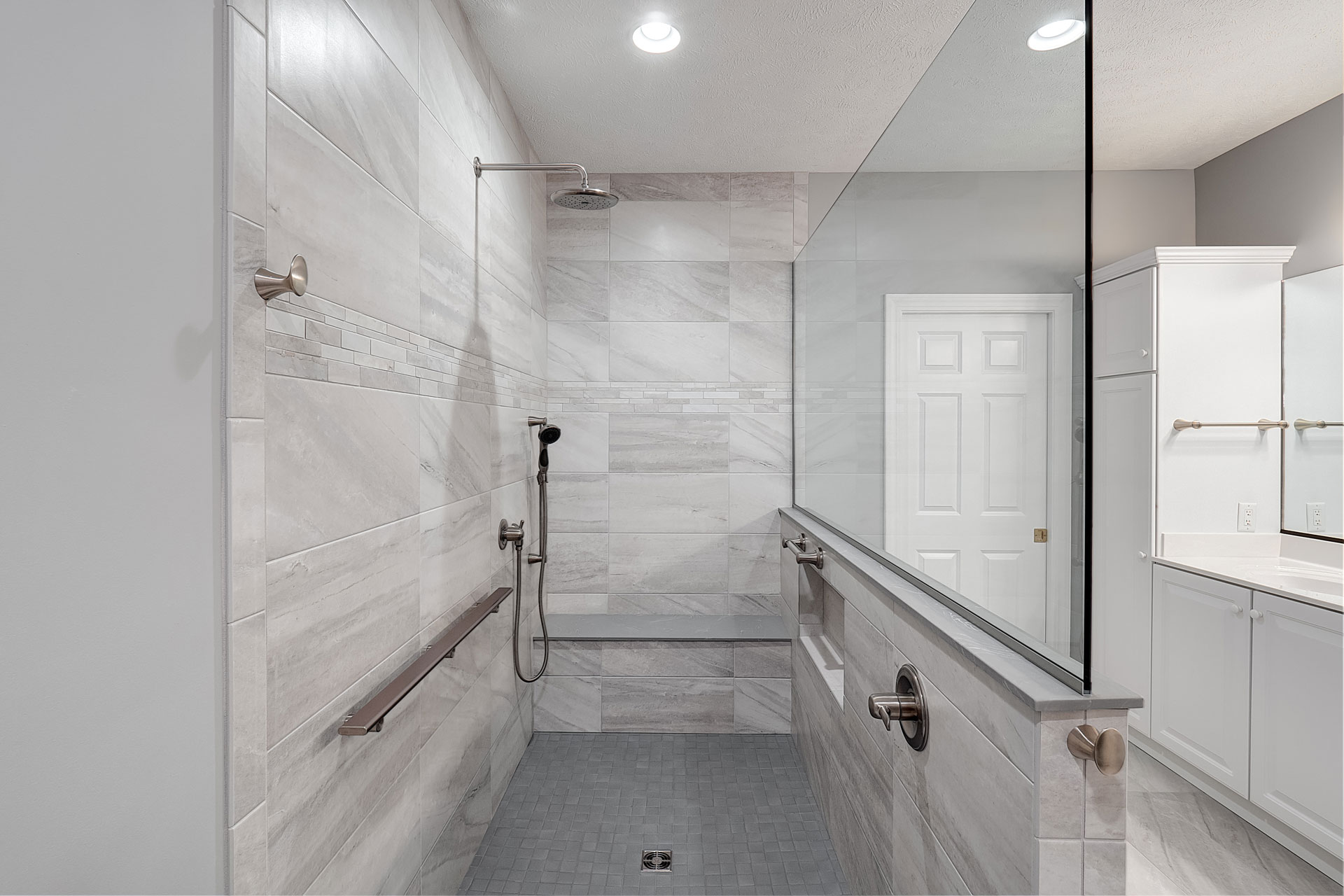 This stunning primary bathroom transformation proves that barrier free showers can be beautiful!