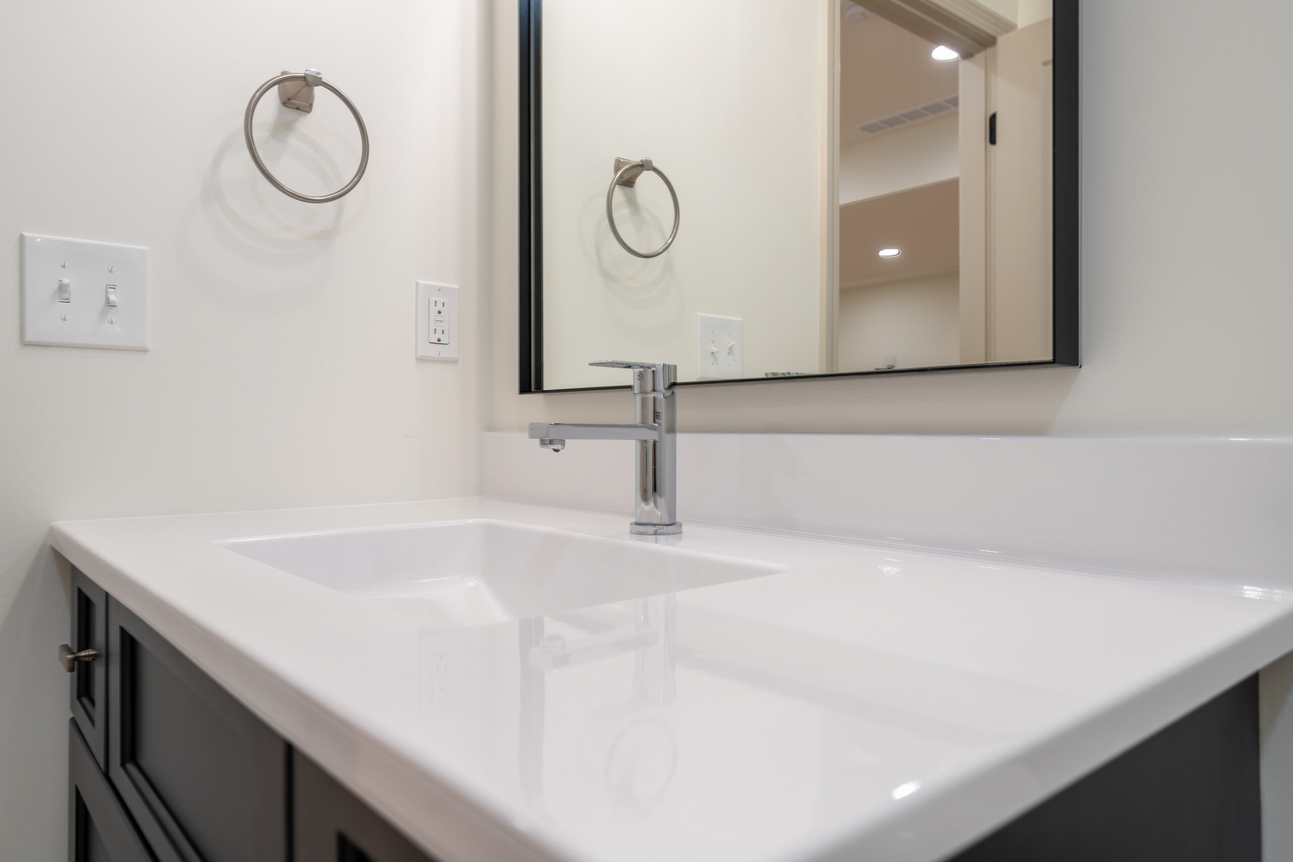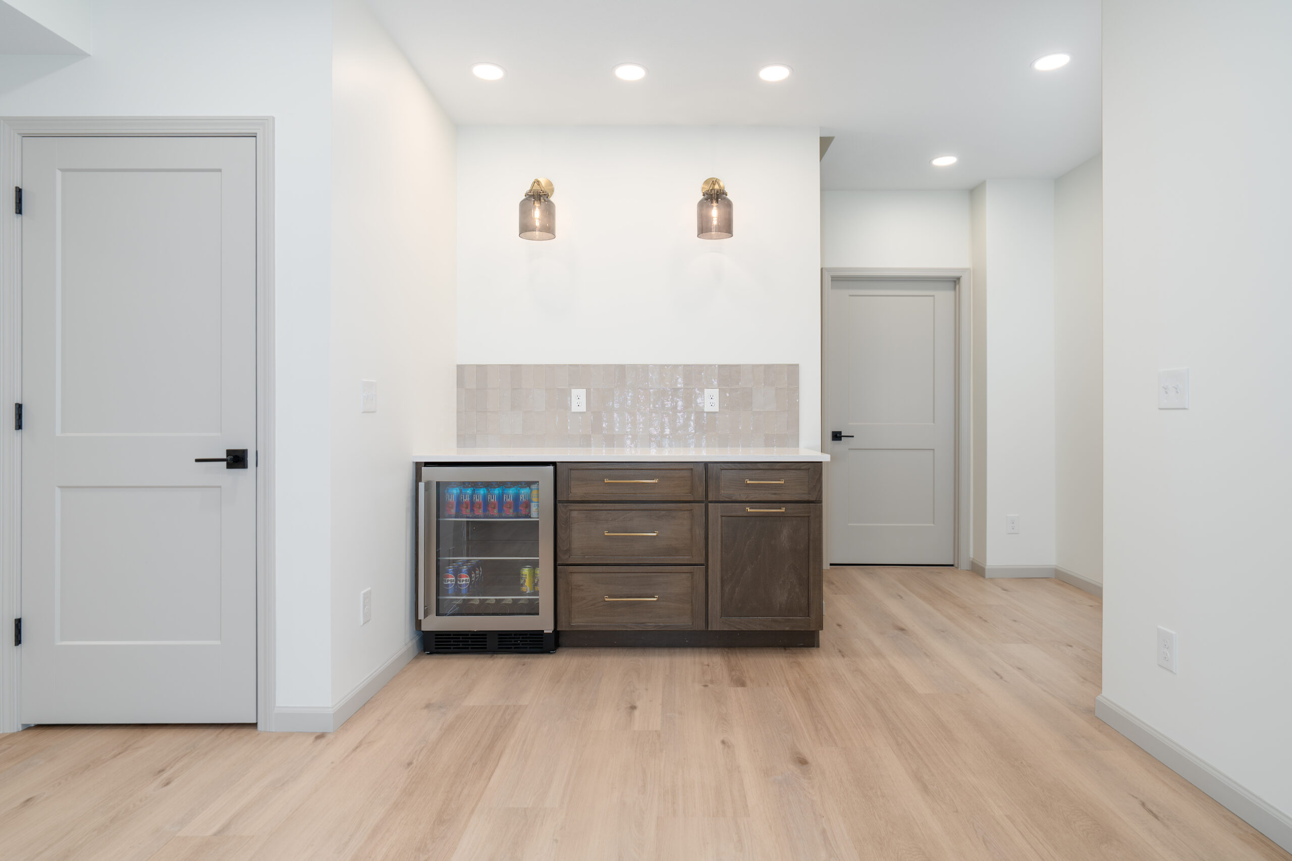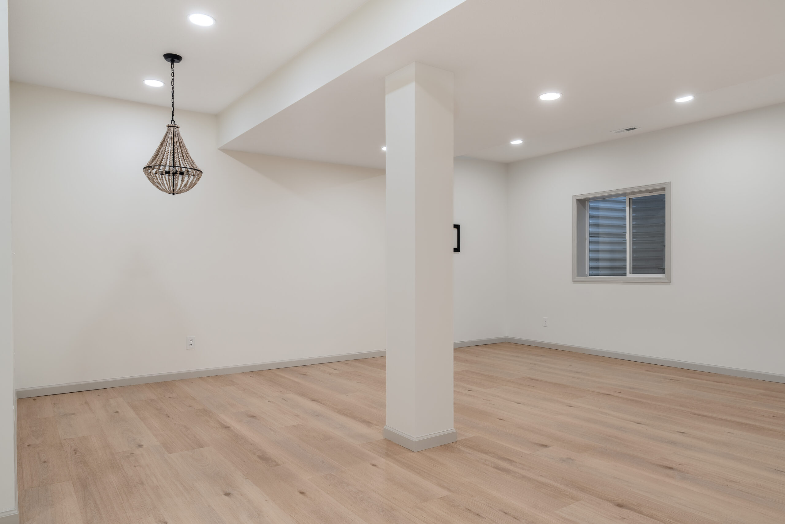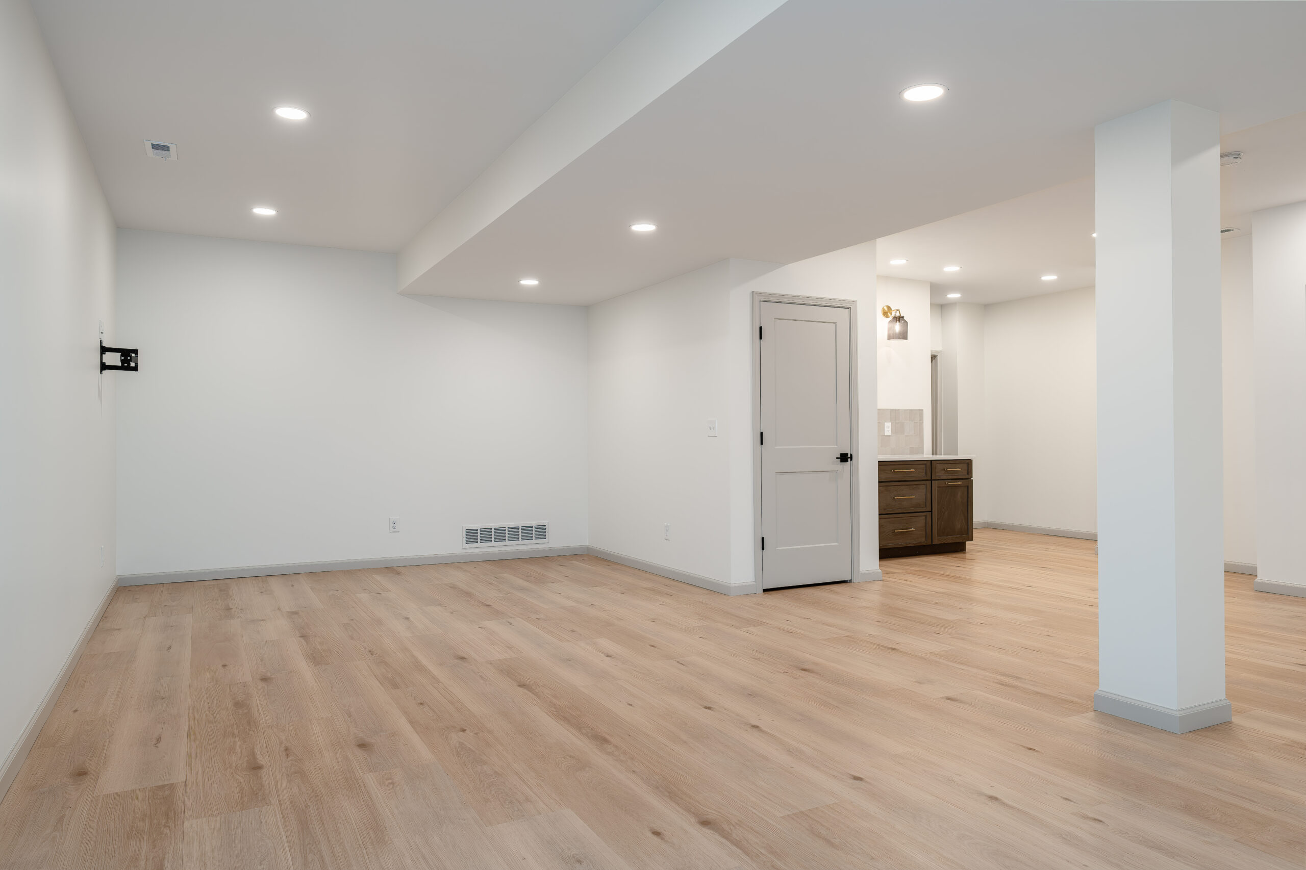 A young family takes advantage of their unfinished basement for some much-needed extra space. The large, finished room provides zones for; crafting, playing, exercising and media viewing, while still enabling the family to be together. A new bathroom along with an existing egress window is ideal for overnight guests. The beautiful, new finished basement is the ultimate definition of flex-space!